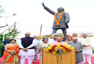 लखनऊ । उत्तर प्रदेश के मुख्यमंत्री योगी आदित्यनाथ ने मंगलवार को पूर्व मुख्यमंत्री हेमवती नंदन बहुगुणा की पुण्यतिथि पर आयोजित श्रद्धांजलि सभा में भाग लिया। राजधानी लखनऊ में आयोजित कार्यक्रम में मुख्यमंत्री ने उनकी प्रतिमा पर पुष्प अर्पित कर श्रद्धांजलि दी और उनके योगदान को स्मरण किया। मुख्यमंत्री योगी आदित्यनाथ ने बहुगुणा को लोकप्रिय राजनेता, […]