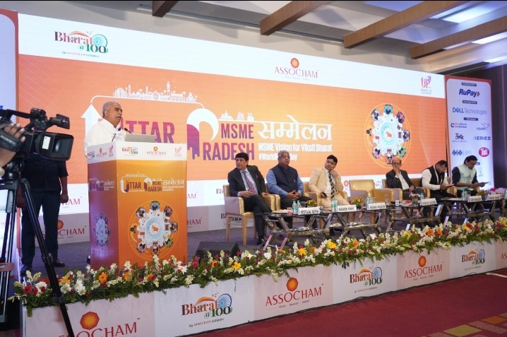 इसके माध्यम से बहुत बड़ी संख्या में युवाओं को रोजार मिल सकता है। भारत की जीडीपी में एमएसएमई का योगदान 30 प्रतिशत है। जबकि निर्यात में भी उसकी हिस्सेदारी 50 प्रतिशत के आसपास है।श्री सचान ने कहा कि प्रदेश सरकार राज्य की सभी 90 लाख से ज्यादा एमएसएमई इकाइयों को सरकारी पोर्टल पर पंजीकृत कराने के लिये प्रयास कर रही है। सरकार ने ‘वन डिस्ट्रिक्ट, वन प्रोडक्ट’ (ओडीओपी) योजना के जरिये स्थानीय उत्पादों को पूरी दुनिया में पहचान दिलायी है। खुद प्रधानमंत्री नरेन्द्र मोदी ने इसे पूरे देश की योजना बनाया है।उत्तर प्रदेश में लैंड बैंक बनाने के सरकार के प्रयासों का उल्लेख करते हुए उन्होंने कहा कि सरकार ने एमएसएमई को सस्ती जमीन दिलवाने के लिये ‘प्लेज स्कीम’ शुरू की है। बहुत से लोग एमएसएमई की इस योजना से जुड़ सकते हैं। इसमें जमीन खरीदने की स्टांप कर पर 100 प्रतिशत छूट है। इसके अलावा तमाम तरह की एनओसी दिलाने में भी सरकार मदद कर रही है। श्री सचान ने कहा कि प्रदेश की एमएसएमई नीति कई मायनों में अनोखी है। इसमें एक करोड़ तक के एमएसएमई को भी ब्याज में 50 प्रतिशत की सब्सिडी की व्यवस्था है। इसके अलावा प्रधानमंत्री मुद्रा योजना, स्टैंडअप, क्रेडिट गारंटी योजना जैसी योजनाएं चलाकर एमएसएमई को मदद दी जा रही है। विपणन सहायता और बाजार तक पहुंच कैसे बने, इसके लिये भी सरकार कदम उठा रही है। ई—कॉमर्स मंचों का उपयोग, अंतराष्ट्रीय मेलों में भागीदारी, कौशल विकास के लिये भी काम किया जा रहा है।इससे पहले, एसोचैम बिजनेस फैसिलिटेशन और ग्लोबल कॉम्पिटीटिवनेस की चेयरपर्सन सुषमा पॉल बेरलिया ने स्वागत भाषण किया। उन्होंने कहा कि उत्तर प्रदेश सरकार ब्याज सब्सिडी और क्रेडिट गारंटी योजना जैसे कदम उठाकर एमएसएमई को लगातार प्रोत्साहित कर रही है। एमएसएमई विकसित भारत के विजन के तहत एसोचैम ‘उत्तर प्रदेश एमएसएमई सम्मेलन’ आयोजित कर रहा है। इस सिलसिले को बरकरार रखा जाएगा। उन्होंने कहा कि एमएसएमई की सहभागिता और उनमें रोजगार को बढ़ाकर ही विकसित भारत का सपना पूरा किया जा सकता है। दुनिया वैकल्पिक आपूर्ति श्रंखला की तलाश कर रही है। यह हमारे पास एक अवसर है। इस लिहाज से उत्तर प्रदेश के पास बहुत मौके हैं। मुख्यमंत्री योगी आदित्यनाथ की अगुवाई में सरकार एमएसएमई को बढ़ावा देने के लिये अनेक सार्थक कदम उठा रही है। महिलाओं और हाशिये पर खड़े लोगों में उद्यमिता को बढ़ावा दिया जा रहा है। उत्तर प्रदेश में इस वक्त 90 लाख से ज्यादा एमएसएमई से 1.65 करोड़ लोगों को रोजगार मिल रहा है। यह देश में सबसे ज्यादा है। सिडबी के महाप्रबंधक मनीष सिन्हा ने कहा कि केन्द्र सरकार देश की अर्थव्यवस्था को तीसरी सबसे बड़ी अर्थव्यवस्था बनाने की ओर अग्रसर है। यूपी सरकार ने 2027