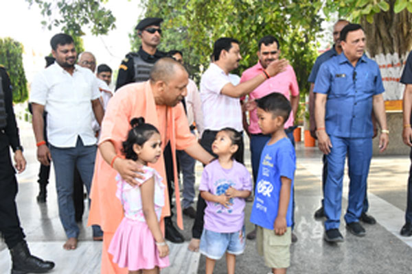 बच्चों के साथ उनकी ऐसी ही आत्मीयता का दृश्य मंगलवार सुबह गोरखनाथ मंदिर में देखने को मिला।