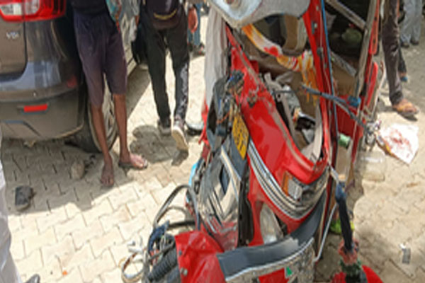 फिरोजाबाद । उत्तर प्रदेश के फिरोजाबाद में शनिवार दोपहर एक भीषण सड़क हादसा हुआ है। कार और ऑटो के बीच हुई टक्कर में पांच लोगों की मौत हो गई है। मरने वाले में एक महिला और एक बच्चा भी शामिल है। हादसे में कई लोगों के घायल होने की भी खबर सामने आ रही है।