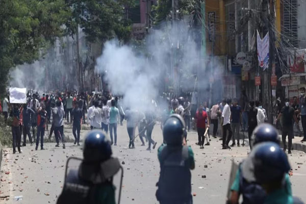 नई दिल्ली। बांग्लादेश में छात्रों का आंदोलन लगातार हिंसक होता जा रहा है। स्टूडेंट्स नौकरी में रिजर्वेशन खत्म करने की मांग कर रहे हैं। हिंसक प्रदर्शन में अभी तक 64 लोगों की मौत हो चुकी है.।वहीं, प्रदर्शनकारी छात्रों ने नरसिंगडी जिले की एक जेल की इमारत में आग लगा दी और सैकड़ों कैदियों को मुक्त करा दिया।