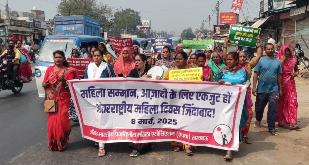 अंतरराष्ट्रीय महिला दिवस के अवसर पर ऑल इंडिया प्रोग्रेसिव वूमेन्स एसोसिएशन (ऐपवा) ने आज लखनऊ में चंद्रिका देवी गेट से अस्सी क्रॉसिंग तक एक मार्च आयोजित किया। इस मार्च में बड़ी संख्या में महिलाओं, कामकाजी महिलाओं, छात्राओं और स्थानीय नागरिकों ने भाग लिया और महिलाओं के खिलाफ बढ़ती हिंसा, कामकाजी महिलाओं के अधिकारों तथा न्याय की मांग को बुलंद किया।