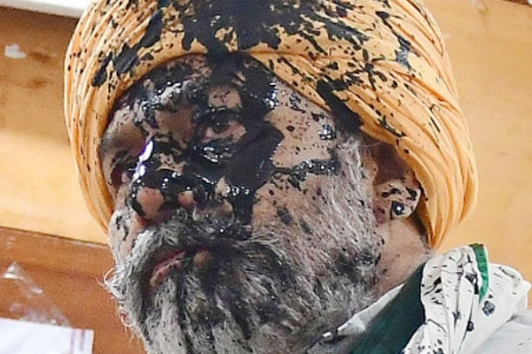 सोमवार को बेंगलुरु के गांधी भवन में एक संवाददाता सम्मेलन को संबोधित करते हुए टिकैत पर हमला किया गया और काला पेंट फेंका गया।