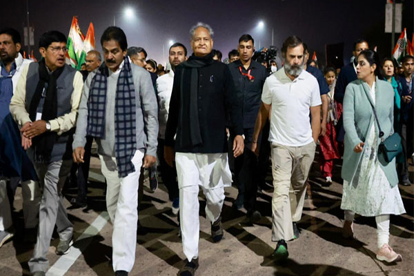 जयपुर। भारत जोड़ो यात्रा के 100 दिन और राजस्थान सरकार के 4 साल पूरे होने का जश्न जयपुर में मनाया जा रहा है। इस मौके पर राहुल गांधी दौसा से जयपुर आ रहे हैं और यहां प्रदेश कांग्रेस कार्यालय में प्रेस कांफ्रेंस करेंगे। राहुल गांधी समेत यात्रा में शामिल प्रमुख नेता शुक्रवार शाम को यहां अल्बर्ट हॉल पर होने वाले सुनिधि चौहान म्यूजिकट नाइट शो में शामिल होंगे। यह कार्यक्रम सरकार के चार साल पूरे होने पर किया जा रहा है। यात्रा में शुक्रवार को टी ब्रेक की जगह सीधा लंच ब्रेक रखा गया है। इसके बाद राहुल गांधी हेलिकॉप्टर से जयपुर आएंगे। शाम चार बजे प्रदेश कांग्रेस कार्यालय के नए ऑफिस में राहुल गांधी राजस्थान में पहली प्रेस कांफ्रेंस करेंगे।