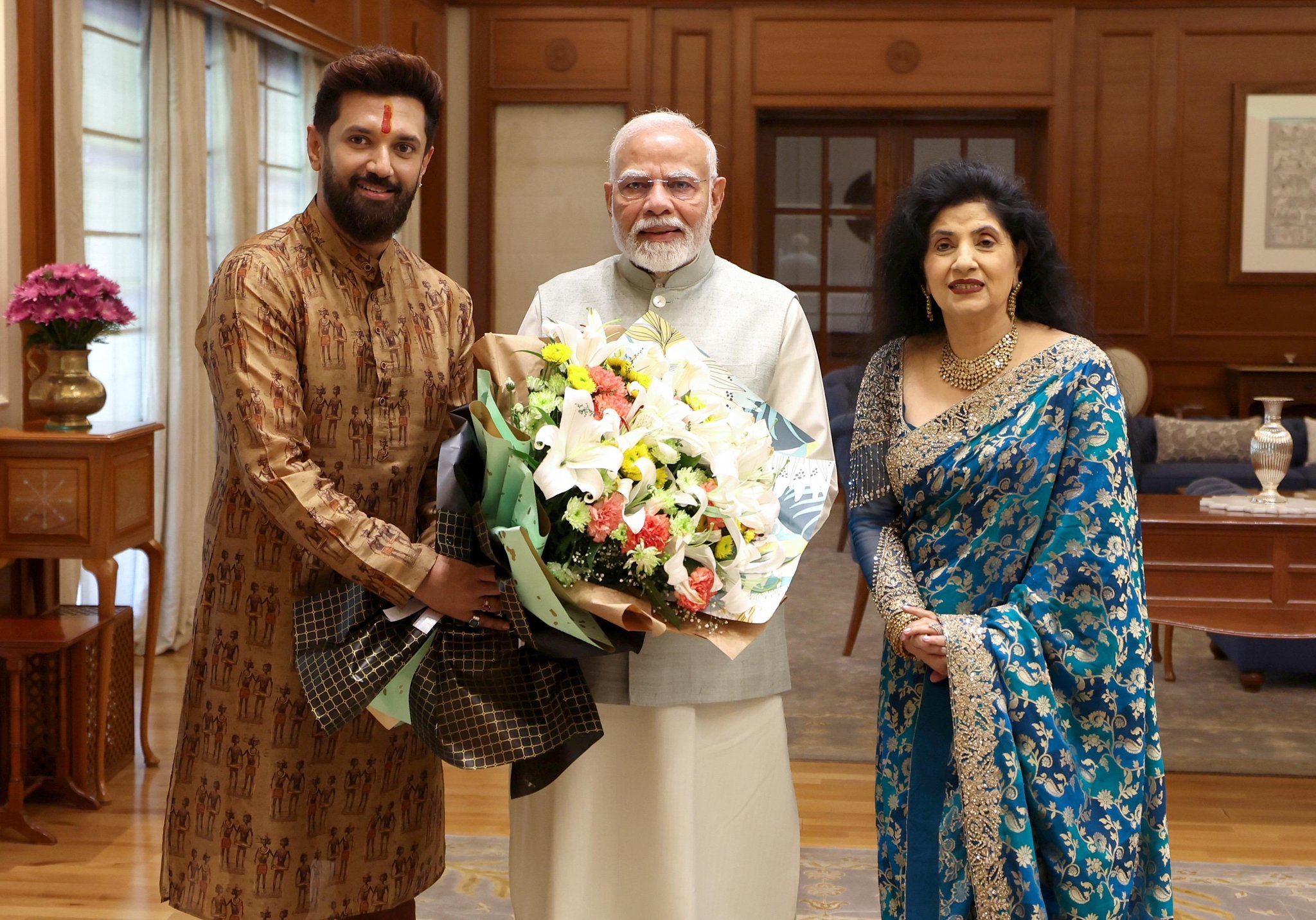 नई दिल्ली । केंद्रीय खाद्य प्रसंस्करण उद्योग मंत्री और लोक जनशक्ति पार्टी (रामविलास) के राष्ट्रीय अध्यक्ष चिराग पासवान ने अपने परिवार के साथ बुधवार को प्रधानमंत्री नरेंद्र मोदी से मुलाकात कर उन्हें दीपावली की बधाई दी। इस खास मौके पर चिराग ने प्रधानमंत्री को फूलों का गुलदस्ता भी भेंट किया। चिराग ने प्रधानमंत्री संग हुई मुलाकात की तस्वीरें अपने सोशल मीडिया ‘एक्स’ हैंडल पर साझा भी की हैं।