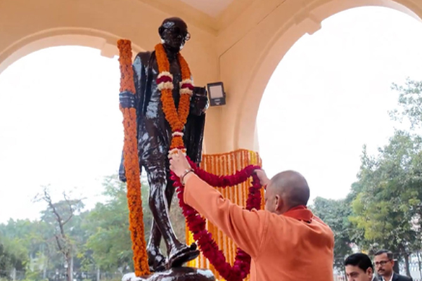 लखनऊ । राष्ट्रपिता महात्मा गांधी की पुण्यतिथि के अवसर पर शुक्रवार को मुख्यमंत्री योगी आदित्यनाथ ने लखनऊ के जीपीओ पार्क में स्थापित गांधी जी की प्रतिमा पर पुष्पांजलि अर्पित कर उन्हें भावभीनी श्रद्धांजलि दी। श्रद्धा व सम्मान के वातावरण में आयोजित इस कार्यक्रम में मुख्यमंत्री ने गांधी प्रतिमा पर माल्यार्पण कर बापू को नमन किया। इसके बाद कुछ क्षण मौन रहकर उन्होंने राष्ट्रपिता को स्मरण किया। मुख्यमंत्री ने अपने एक्स हैंडल पर भी बापू को श्रद्धा सुमन अर्पित करते हुए आमजन से उनके आदर्शों को अपनाने का आह्वान किया। श्रद्धांजलि समारोह के दौरान स्कूली बच्चों द्वारा महात्मा गांधी के प्रिय भजनों की प्रस्तुति दी गई। ‘रघुपति राघव राजाराम’ सहित अन्य भजनों की मधुर धुनों से जीपीओ पार्क गूंज उठा। मुख्यमंत्री योगी आदित्यनाथ ने एकाग्रता के साथ लगभग 15 मिनट तक बैठकर भजनों को सुना। इस दौरान उन्होंने न केवल बच्चों की प्रस्तुति की सराहना की, बल्कि गांधी प्रतिमा के समक्ष सभी स्कूली बच्चों के साथ फोटो भी खिंचाई। इससे पूर्व, मुख्यमंत्री ने अपने एक्स हैंडल पर बापू को श्रद्धांजलि देते हुए लिखा, ‘राष्ट्रपिता महात्मा गांधी जी की पुण्यतिथि पर उन्हें शत-शत नमन। श्रद्धेय बापू का सत्यनिष्ठ आचरण, अहिंसा की उनकी अडिग साधना और मानवता के प्रति अनन्य करुणा, संपूर्ण विश्व को सदैव आलोकित करती रहेगी। आइए, बापू के आदर्शों को आत्मसात कर समृद्ध, न्यायपूर्ण और विकसित भारत के निर्माण में अपना श्रेष्ठ योगदान दें।’