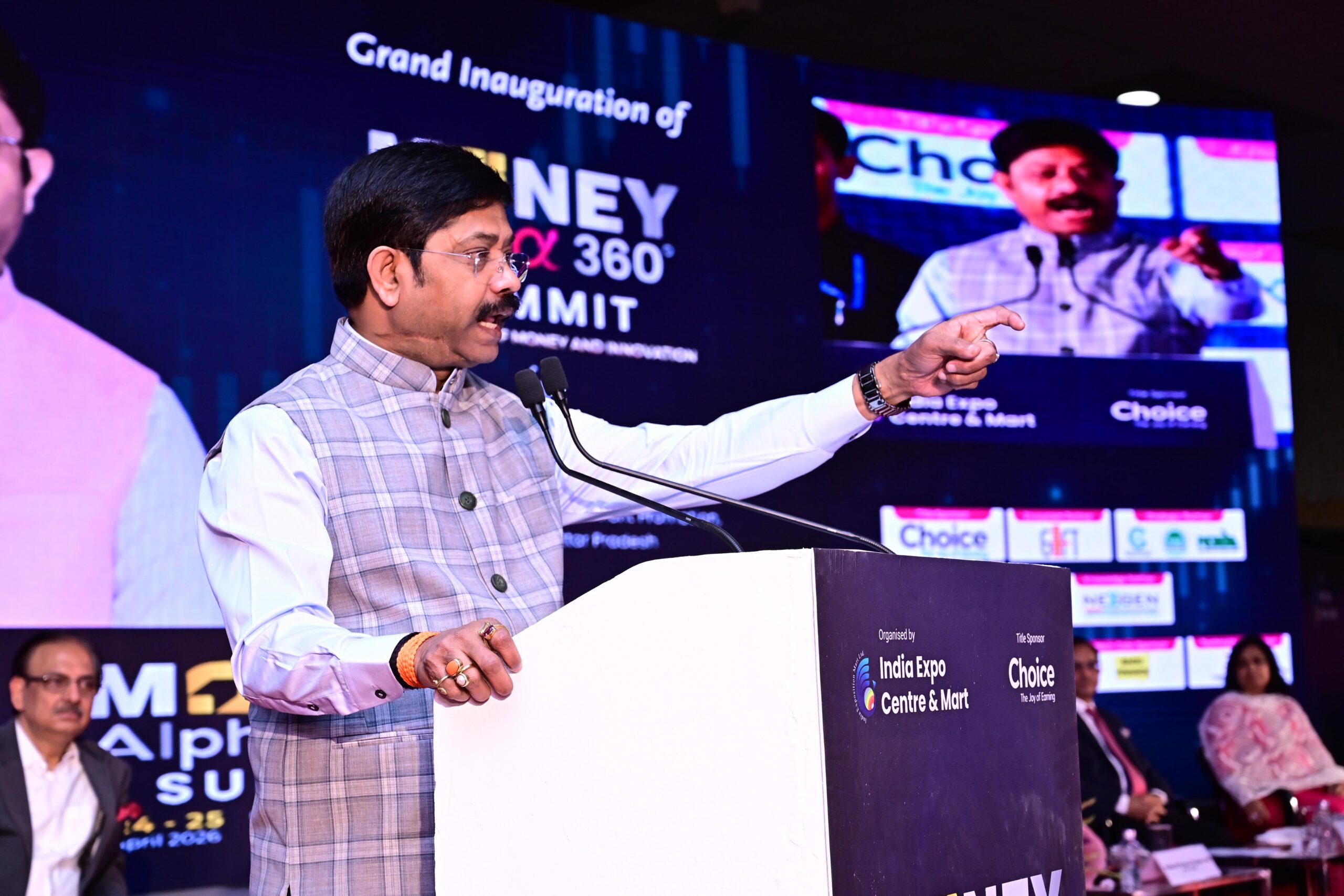 ग्रेटर नोएडा स्थित इंडिया एक्सपो सेंटर एंड मार्ट में इंडिया एक्सपोजिशन मार्ट लिमिटेड (IEML) द्वारा आयोजित दो दिवसीय मनी अल्फा 360° समिट’ का शुक्रवार को उत्तर प्रदेश सरकार के औद्योगिक विकास मंत्री नन्द गोपाल गुप्ता नन्दी ने उद्घाटन किया।