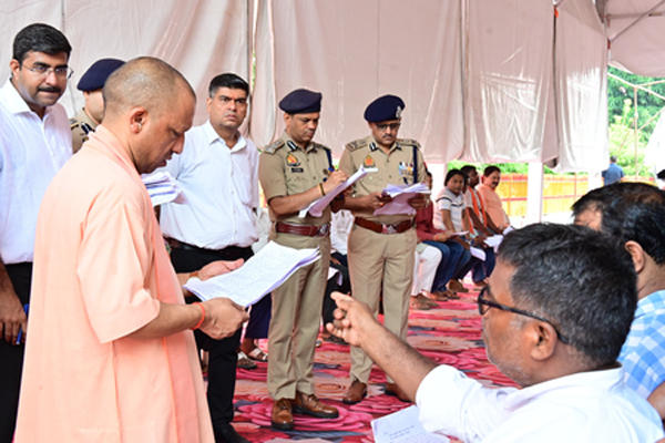 मुख्यमंत्री योगी बुधवार को गोरखनाथ मंदिर में आयोजित जनता दर्शन में लोगों की समस्याएं सुन रहे थे।