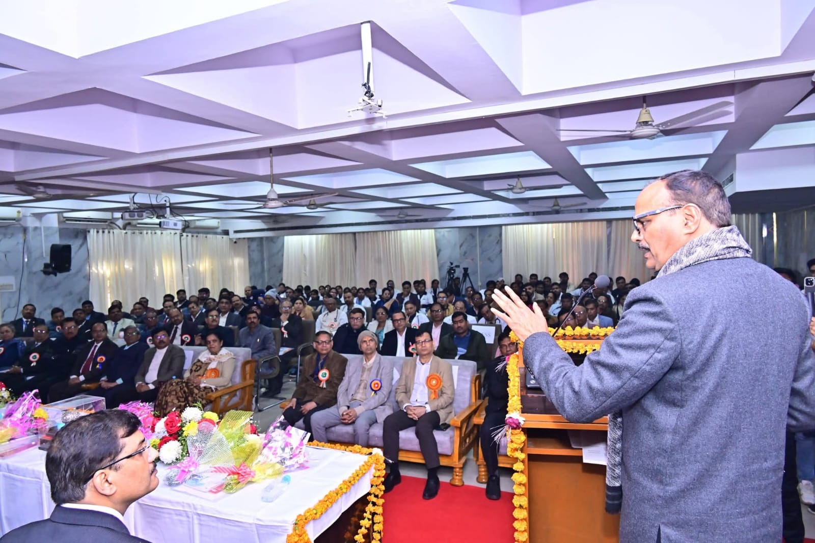 समारोह में मुख्य अतिथि के रूप में मा० राज्यमंत्री, उत्तर प्रदेश सरकार श्री मयंकेश्वर शरण सिंह जी उपस्थित रहे। कार्यक्रम की गरिमा बढ़ाने हेतु महानिदेशक (परिवार कल्याण) डॉ० पवन कुमार अरुण जी, महानिदेशक (प्रशिक्षण) डॉ० एच०डी० अग्रवाल जी, मुख्य चिकित्सा अधिकारी डॉ० एन०बी० सिंह जी और चिकित्सा अधीक्षक डॉ० देवाशीष शुक्ला जी सहित कई अन्य गणमान्य चिकित्सा अधिकारी मौजूद रहे।