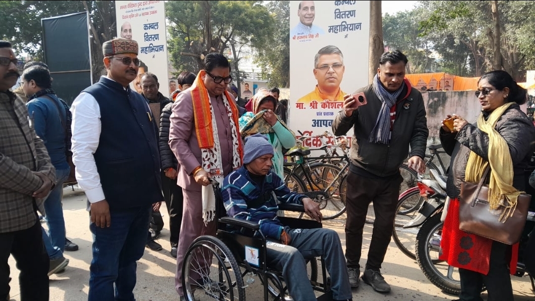 ग्वारी पार्क में सहायक उपकरण, बैसाखी,छड़ी,ट्राई साइकिल चश्मा, सैकड़ो लाभार्थियों ने सहायक उपकरण और कंबलों का लाभ प्राप्त किया