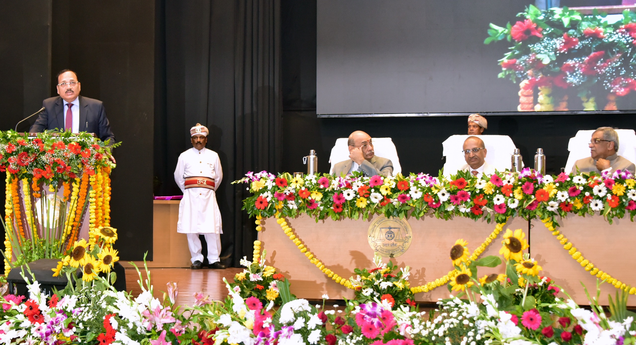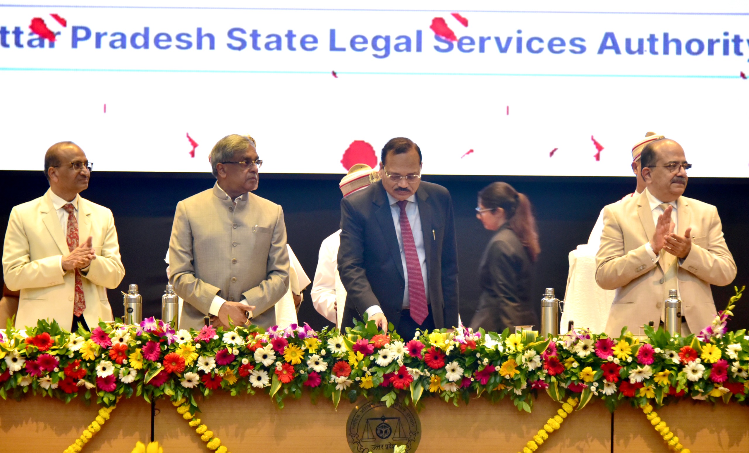 यह समारोह माननीय न्यायमूर्ति अरुण भंसाली, मुख्य न्यायाधीश, इलाहाबाद उच्च न्यायालय एवं मुख्य संरक्षक, यूपीएसएलएसए की गरिमामयी उपस्थिति में आयोजित किया गया: माननीय न्यायमूर्ति मनोज कुमार गुप्ता, वरिष्ठ न्यायाधीश एवं कार्यकारी अध्यक्ष, यूपीएसएलएसए; माननीय न्यायमूर्ति महेश चंद्र त्रिपाठी, अध्यक्ष, एचसीएलएससी, इलाहाबाद; और माननीय न्यायमूर्ति राजन रॉय, अध्यक्ष, एचसीएलएसएससी, लखनऊ पीठ। माननीय न्यायमूर्ति डी.के. उपाध्याय, मुख्य न्यायाधीश, दिल्ली उच्च न्यायालय ने भी अपनी गरिमामयी उपस्थिति से इस अवसर की शोभा बढ़ाई।