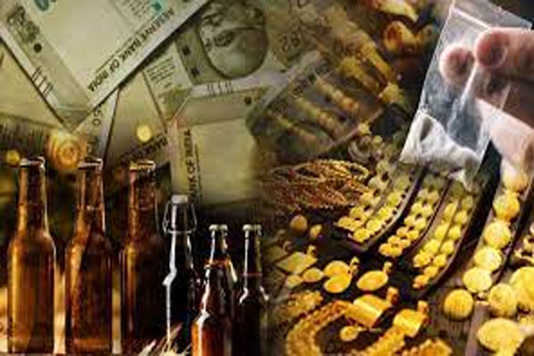 आबकारी, आयकर, पुलिस एवं नार्कोटिक्स विभाग एवं अन्य प्रवर्तन एजेंसियों द्वारा 29 मार्च को कुल पांच करोड़ 84 लाख 65 हजार रुपये कीमत की शराब, ड्रग्स और नकदी आदि जब्त करने में सफलता मिली है। इसमें दो करोड़ पांच लाख 44 हजार रुपये नकद धनराशि, 66.90 लाख रुपये कीमत की 24,471.15 लीटर शराब, 312.15 लाख रुपये कीमत की 898.51727 किलोग्राम ड्रग्स एवं 0.17 लाख रुपये कीमत की तीन अन्य सामग्री जब्त हुई हैं।
