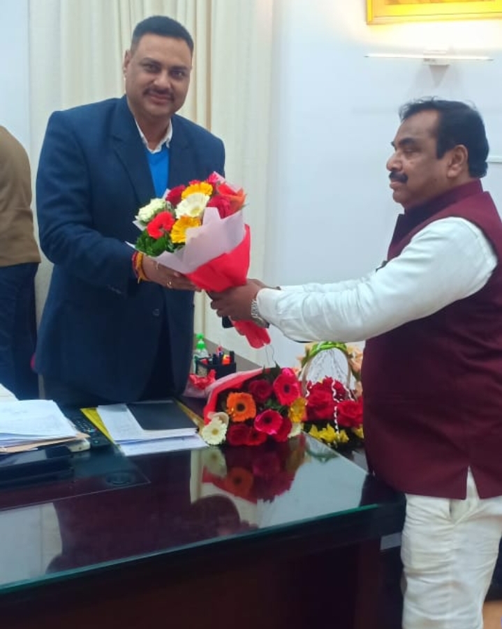 श्री पवन गंगवार आई०ए०एस० जी को, राज्य सम्पत्ति अधिकारी का पदभार ग्रहण करने पर, जवाहर भवन, इंदिरा भवन, महासंघ के, महामंत्री, रामकुमार धानुक ने मिलकर खूब ढ़ेर सारी बहुत-बहुत बधाई दी