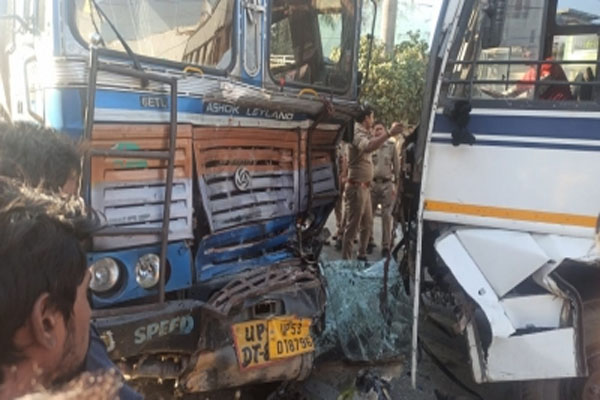 बिजनौर में बस और टैंकर की भिड़ंत मे एक की मौत, 12 लोग घायल