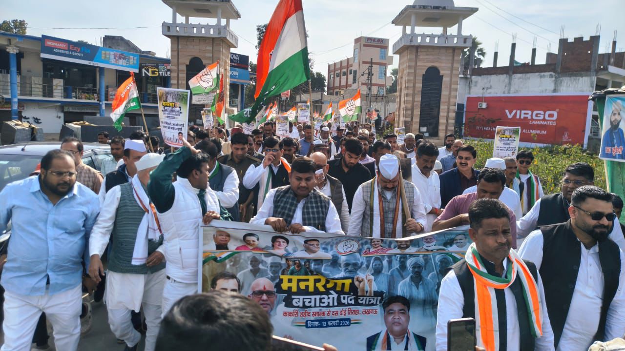 लखनऊ, 13 फरवरी, 2026। अखिल भारतीय कांग्रेस कमेटी के आवाहन पर उ0प्र0 कांग्रेस कमेटी द्वारा आज प्रदेशव्यापी मनरेगा बचाओ पदयात्रा पूरे प्रदेश में सम्पन्न हुई। प्रदेश के सभी जनपदों में मनरेगा को उसके मूल स्वरूप में बहाल करने के लिए कांग्रेस पार्टी द्वारा जारी आन्दोलन की रूपरेखा के अनुसार मनरेगा बचाओ संग्राम के तहत आज प्रदेश के सभी 75 जनपदों में मनरेगा बचाओ पदयात्रा की गयी। लखनऊ की मनरेगा बचाओ पदयात्रा में प्रदेश कांग्रेस अध्यक्ष श्री अजय राय जी पूर्व मंत्री स्वयं शामिल रहे।