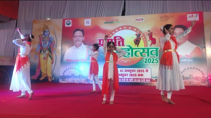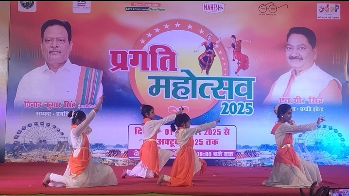 प्रगति महोत्सव 2025 में प्रतिदिन सांस्कृतिक संध्या का आयोजन किया जा रहा है सांस्कृतिक कार्यक्रम में आज आशा नित्यांगना फाउंडेशन जिसकी निदेशक अनुराधा के नेतृत्व में पहली प्रस्तुति गणेश वंदना से आरंभ हुई अयंतिका, अंशिका,माही,शानवी और प्रिशा काशवी अस्थान का शोक नृत्य खूब पसंद किया गया क्लासिकल की प्रस्तुति श्रीजल शुक्ला,अंशिका शिवी,यादव और शुभांगी पांडे द्वारा किया गया, शिव स्तुति माही और अंशिका द्वारा रेट्रो डांस चंद्रशी गौतम द्वारा, कृष्ण स्तुति गुनगुन और कशवी, समूह नृत्य अयंतिका अंशिका माही शानवी और प्रिशा, सोलो डांस गुनगुन हंसिका और प्रिशा द्वारा प्रस्तुत किया गया। प्रगति महोत्सव 2025 में प्रस्तुति देने वाले सभी कलाकारों को संस्था के उपाध्यक्ष एन बी सिंह द्वारा सर्टिफिकेट देख सम्मानित किया गया