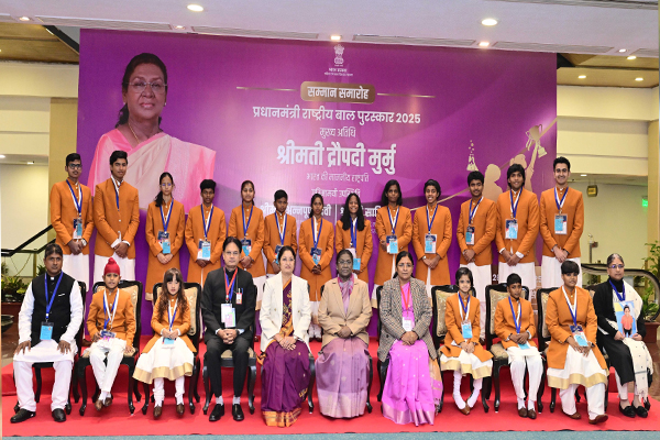 नई दिल्ली । राष्ट्रपति द्रौपदी मुर्मू ने विभिन्न क्षेत्रों में असाधारण उपलब्धियां हासिल करने वाले बच्चों को प्रधानमंत्री राष्ट्रीय बाल पुरस्कार से सम्मानित किया।वीर बाल दिवस के मौके पर राष्ट्रपति द्रौपदी मुर्मू ने शुक्रवार को 20 बच्चों को ‘प्रधानमंत्री राष्ट्रीय बाल पुरस्कार’ से सम्मानित किया। इन बच्चों को 18 राज्यों और केंद्र शासित प्रदेशों से चुना गया है। एक विस्फोटक बल्लेबाज के रूप में अंतरराष्ट्रीय स्तर पर तेजी से उभर रहे बिहार के वैभव सूर्यवंशी को राष्ट्रपति द्रौपदी मुर्मू ने शुक्रवार को प्रधानमंत्री राष्ट्रीय बाल पुरस्कार से सम्मानित किया। पिछले एक साल में वैभव सूर्यवंशी ने हर फॉर्मेट में देश-विदेश में अपनी बल्लेबाजी से दुनियाभर के क्रिकेट फैंस को हैरान किया है। उनकी असाधारण बल्लेबाजी क्षमता और प्रदर्शन को देखते हुए ही उन्हें इस सम्मान के लिए चुना गया। सम्मान समारोह की वजह से वैभव सूर्यवंशी दिल्ली में हैं। दिल्ली में होने के कारण वे रांची में विजय हजारे ट्रॉफी में मणिपुर के खिलाफ खेले जा रहे मैच में बिहार टीम का हिस्सा नहीं हैं।