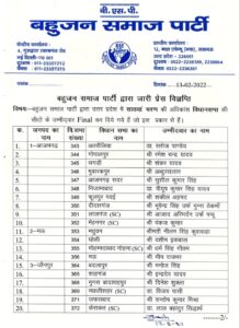 बसपा की ओर से जारी की गई 47 उम्मीदवारों की इस सूची में गाजीपुर के अलावा आजमगढ़, मऊ, जौनपुर, चंदौली, वाराणसी और भदोही जिले की विधानसभा सीटों के लिए उम्मीदवारों के नाम हैं. बसपा की इस सूची में मीरजापुर और सोनभद्र जिले की विधानसभा सीटों के लिए उम्मीदवारों के नाम का भी ऐलान किया गया है.