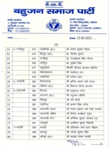 उत्तर प्रदेश में विधानसभा के चुनाव सात चरण में होने हैं. पहले चरण के तहत 58 विधानसभा सीटों के लिए 10 फरवरी को वोट डाले गए थे. दूसरे चरण के तहत 55 विधानसभा सीटों के लिए 14 फरवरी को मतदान होना है. बसपा ने जिन सीटों के लिए उम्मीदवारों के नाम का ऐलान आज किया है, उन सीटों के लिए सातवें और अंतिम चरण में 7 मार्च को मतदान होना है. चुनाव नतीजों का ऐलान 10 मार्च को होगा.