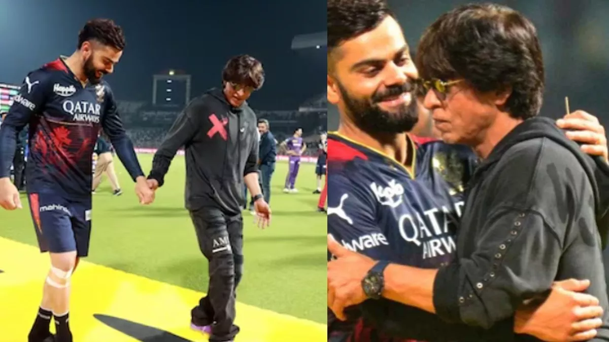 शाहरुख खान ने पहले गले लगाया, फिर खींचे गाल, मैच के बाद विराट कोहली को सिखाया पठान का मस्त सिग्‍नेचर स्‍टेप