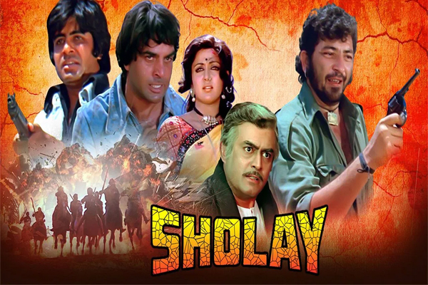 रमेश सिप्पी द्वारा निर्देशित, शोले 1975 में रिलीज़ हुई थी। फिल्म के किरदार और सदाबहार संवादों ने अपने आप में एक पंथ का दर्जा हासिल कर लिया है। सलीम-जावेद द्वारा लिखित इस फिल्म में अमिताभ बच्चन, धर्मेंद्र, अमजद खान, संजीव कुमार, हेमा मालिनी और जया बच्चन ने महत्वपूर्ण भूमिकाएँ निभाई थीं।