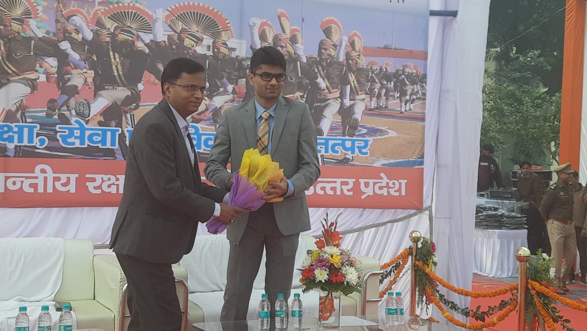 मुख्य अतिथि श्री सुहास एल.वाई., सचिव, युवा कल्याण एवं खेल, उत्तर प्रदेश शासन ने पी.आर.डी. जवानों की रैतिक परेड का निरीक्षण कर मान-प्रणाम स्वीकार किया। स्वागत संयुक्त निदेशक (प्रशासन) श्री अशोक कुमार कनौजिया ने किया।