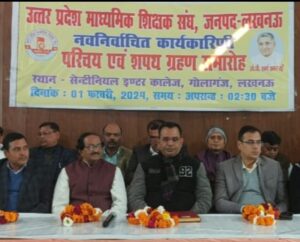 नवनिर्वाचित कार्यकारिणी के पदाधिकरियों एवं सदस्यों को संगठन के महामंत्री नरेन्द्र कुमार वर्मा ने शपथ दिलाई। समारोह में उपस्थित अतिथियों का स्वागत प्रादेशिक उपाध्यक्ष डा0 आर0पी0 मिश्र ने किया। धन्यवाद ज्ञापन जिलाध्यक्ष अनिल शर्मा ने किया तथा संचालन जिलामंत्री महेश चन्द्र ने किया।