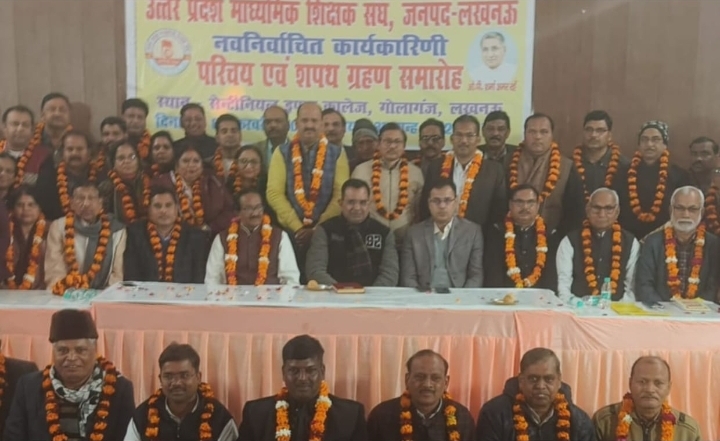 आज सेन्टीनियल इण्टर कालेज के सभागार में उत्तर प्रदेष माध्यमिक शिक्षक संघ की नवनिर्वाचित कार्यकारिणी के पदाधिकारियों एवं सदस्यों का संगठन के प्रादेशिक उपाध्यक्ष डा0 आर0पी0 मिश्र से परिचय कराया गया। परिचय के समय जिलाध्यक्ष अनिल शर्मा, जिलामंत्री महेश चन्द्र, कोषाध्यक्ष आर0पी0 सिंह, आय-व्यय निरीक्षक आलोक पाठक को माला पहनाकर स्वागत किया गया। इसी केे साथ कार्यकारिणी के 6 उपाध्यक्ष, 6 संयुक्त मंत्री तथा 15 कार्यकारिणी कें सदस्यों का भी माल्यार्पण कर स्वागत किया गया।