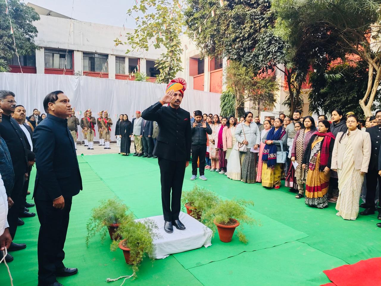 कलेक्ट्रेट परिसर में अपर जिलाधिकारी प्रशासन, अपर नगर मजिस्ट्रेट द्वितीय, अभिहित अधिकारी खाद्य सुरक्षा व समस्त अधिकारी एवं कर्मचारीगण उपस्थित रहे। कलेक्ट्रेट में ध्वजारोहण के बाद जिलाधिकारी द्वारा समस्त अधिकारियों और कर्मचारियों को भारतीय गणतंत्र के संकल्प की शपथ दिलाई गई।