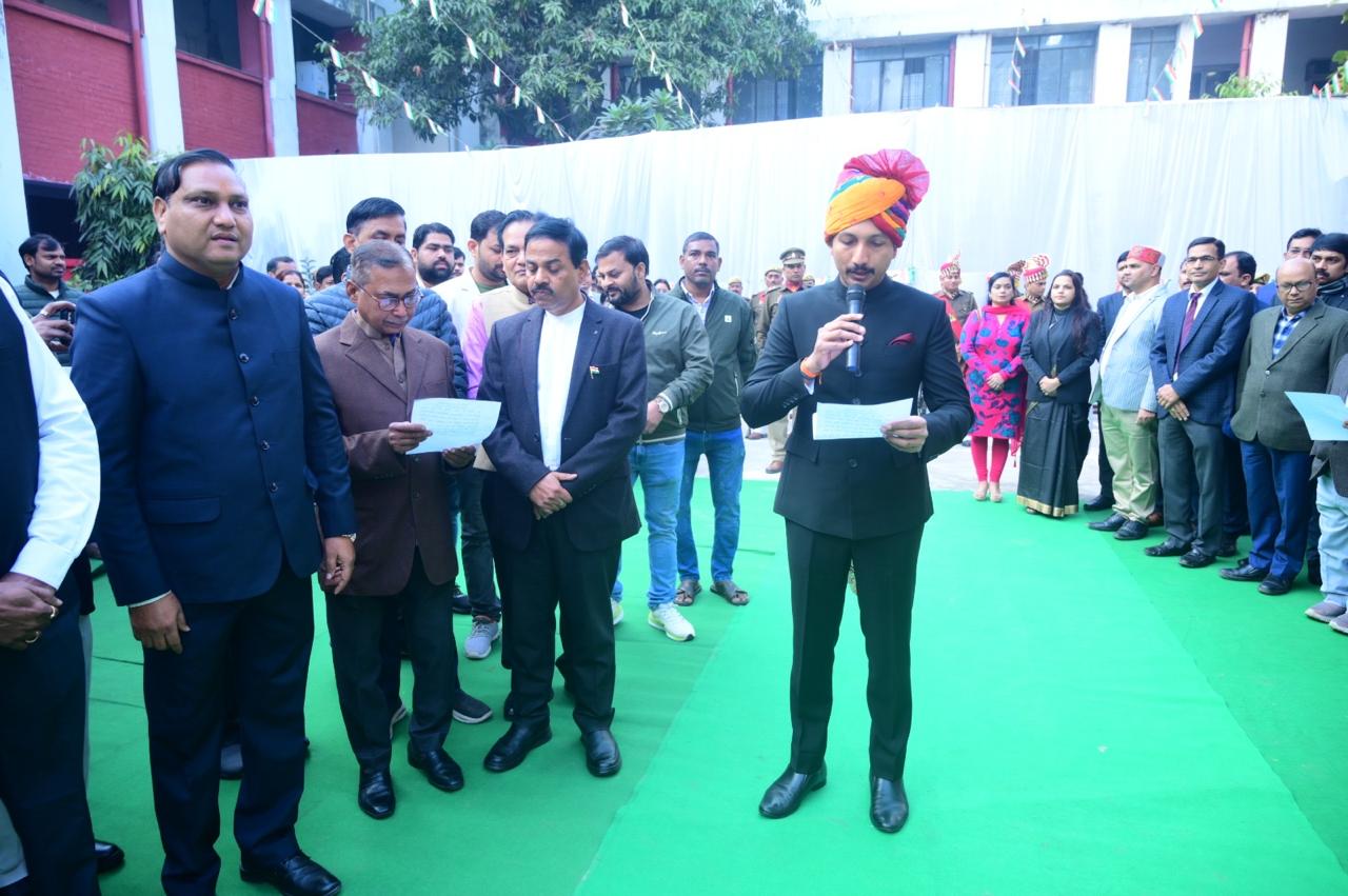 उन्होंने कहा कि आज हम सभी अधिकारीगण एंव कर्मचारीगण संकल्प लेते हैं कि हम अपने संविधान का पूर्ण रूपेण पालन करेंगें तथा उसे अक्षुण बनाये रखेंगें।