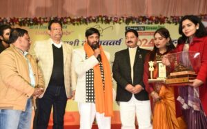 यूपी महोत्सव में आज विशेष रूप से मुख्य अतिथि के रूप में केंद्रीय राज्य मंत्री कौशल किशोर अपने व्यस्त समय निकाल कर पधारे और मंच तथा महोत्सव की शोभा बढ़ाई। मुख्य अतिथि का स्वागत संस्था के अध्यक्ष विनोद कुमार सिंह द्वारा पौधा एवं राम मंदिर का प्रतीकात्मक मॉडल भेंट कर किया गया। इस अवसर पर विनोद कुमार सिंह ने मुख्य अतिथि का स्वागत करते हो कहा कि यह बहुत ही सौभाग्य का विषय है कि आप प्रथम बार यूपी महोत्सव में सांसद के रूप में पधारे थे और आज केंद्रीय मंत्री के रूप में अपने शिरकत की है, प्रगति पर्यावरण संरक्षण आपका सदैव आभारी रहेगा। संस्था द्वारा पर्यावरण, प्रदूषण, नारी सशक्तिकरण जैसे विषयों पर अनेकों कार्यक्रम किए जाते हैं, समाज को जागृत कर जागरूक करने का हमेशा प्रयास किया जाता है। मुख्य अतिथि केंद्रीय राज्य मंत्री कौशल किशोर ने कहा कि संस्था द्वारा ‘क्लीन भारत, ग्रीन भारत’ का जो संकल्प लिया गया है निसंदेह बहुत ही सराहनीय है। भारत के प्रधानमंत्री ने भी आह्वान किया है कि 22 जनवरी को जब अयोध्या में रामलला जब अपने घर पशारें तो सभी देशवासी अपने आस—पास के सभी प्रकार के अंधेरों को दूर करने का प्रयास करें जिसमें पर्यावरण, प्रदूषण, नशाखोरी नारी सशक्तिकरण, शिक्षा, स्वास्थ्य आदि यह सब कुछ शामिल है; यदि हम इस अंधेरे को समाप्त करेंगे तो यही सच्चा राम राज्य होगा। मुख्य अतिथि कौशल किशोर ने कहा कि हमें अपने बच्चों को हॉस्टल की जगह घरों में रखकर पढ़ना होगा और भारतीय संस्कार देना होगा। हमें अपने जीवन में एटीट्यूड को त्यागना होगा: हम जो हैं वही बताना होगा, हर व्यक्ति पहले इंसान है उसके बाद सांसद है, विधायक है और मंत्री है। जीवन हमको सरल बना है और अपने अंदर के अहम को अपने से दूर रखना है, यही सच्चे भारतीय का गुण है और कर्तव्य है। आज के विशेष कार्यक्रम में मुख्य अतिथि द्वारा यूपी गौरव सम्मान से डॉक्टर माधुरी वर्मा एवं गीतिका चतुर्वेदी को स्मृति चिन्ह एवं राम मंदिर का प्रतीकात्मक मॉडल देकर सम्मानित किया। इसके पूर्व मुख्य अतिथि कौशल किशोर एवं अध्यक्ष विनोद कुमार सिंह तथा उपाध्यक्ष एन बी सिंह द्वारा राम सीता की आरती उतार कर आशीर्वाद ग्रहण किया। मंच पर ऐसा लगा कि सब कुछ राममय हो गया है। उपाध्यक्ष एमपी सिंह ने महोत्सव है सभी दर्शकों का आभार जताया और महोत्सव में आने के लिए धन्यवाद दिया।